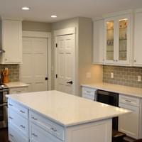 The main level showcases a beautifully remodeled kitchen featuring custom cabinetry, quartz countertops, a glass tile backsplash, under-cabinet lighting, stainless steel appliances, and a dedicated beverage refrigerator. The spacious primary suite includes cherry hardwood floors, a large walk-in closet with a custom storage system, and a private ensuite bath with dual sinks, a walk-in shower, and a whirlpool soaking tub. Additional main-level amenities include a convenient powder room and a functional mudroom with built-in cubbies and optional laundry hookups for main-level living.